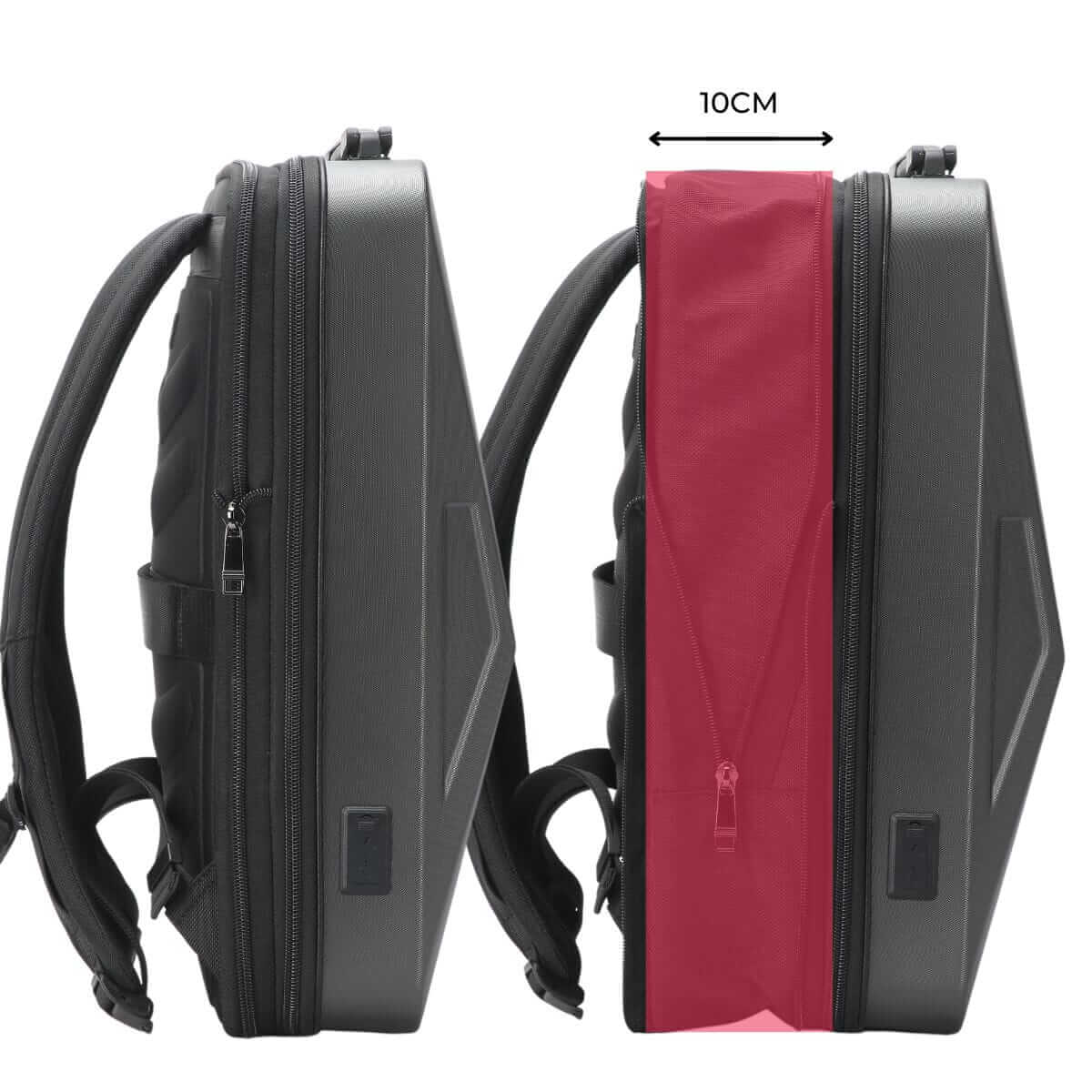 The 10cm expandable back panel allows you to pack more clothes, shoes, and gear when needed. When not in use, it can be compressed and zipped up.
